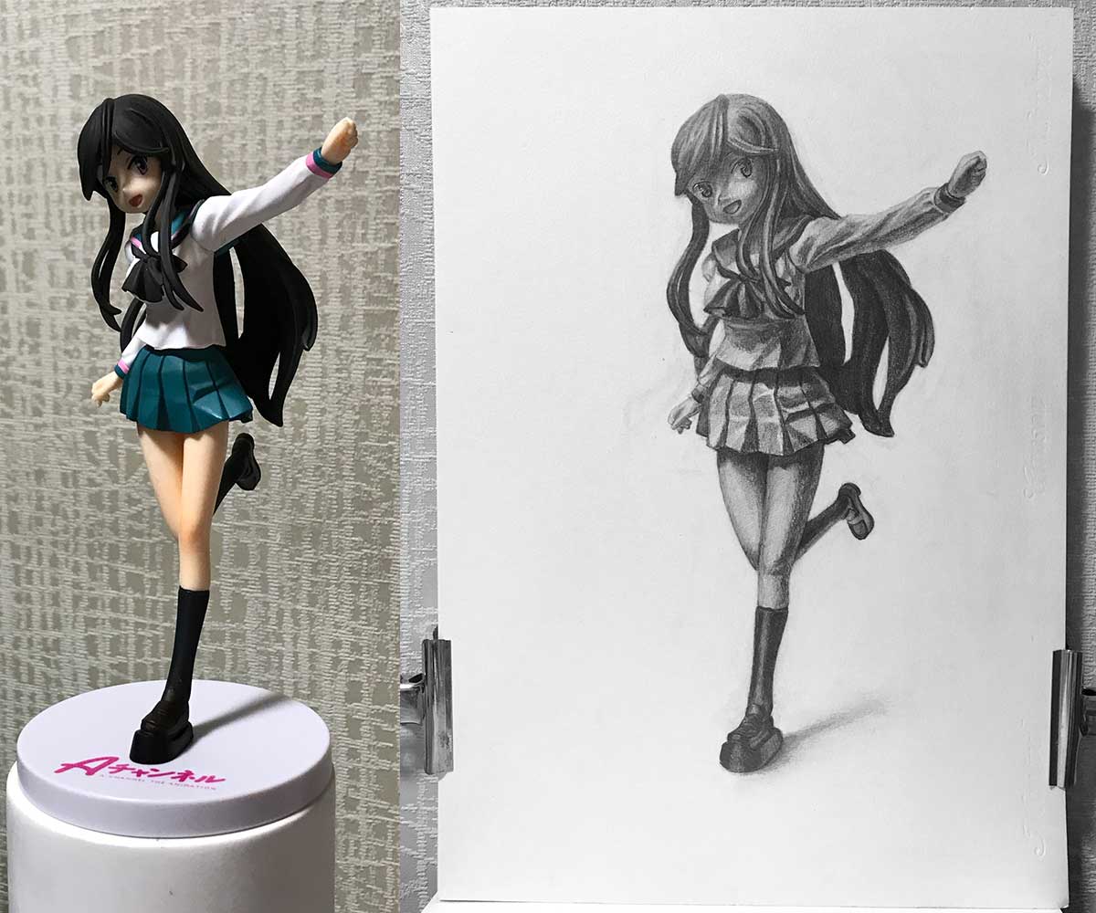 フィギュア鉛筆デッサン制作過程